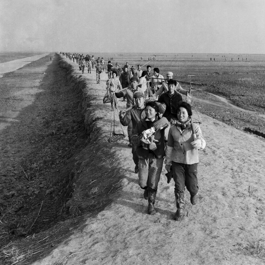 1974年的施湾,潮涨潮退把冲积的淤泥渐渐变作海滩,为了使海滩变肥土,东说念主们在滩涂上筑坝围田,以加多耕大地积。徐金安同劳顿了一天的围垦雄师收工,发现晴明、角度可以,马上跳上小坡完成了捏拍。日复一日,他诚恳纪录了20世纪70、80年代川沙的确而具体的出产与生存。