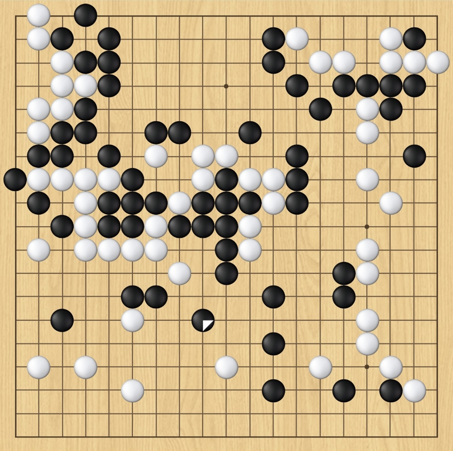 但而后攻弱守强的朴廷桓一刹发力,对中心脏棋张开反击,可能是受时间的压力影响,王星昊却弈出缓手,导致左边三颗黑子被吞,目数上亏损惨重,而白棋将左下一大片据为己有。眼看无力回天,至154手,王星昊推枰认负,朴廷桓捏白中盘胜出,三番棋决战先拔头筹。
